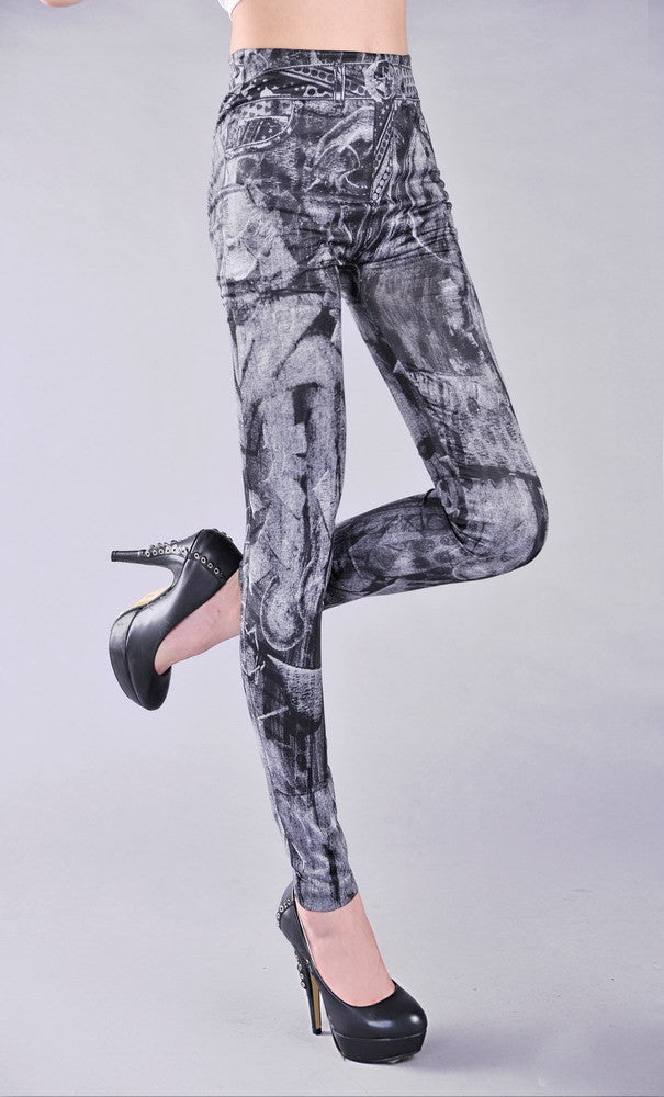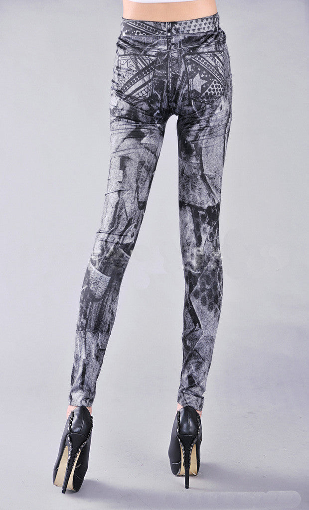 New arrival Women's Fashion Faux Jeans Punk Style Stars Leggings Stretchy