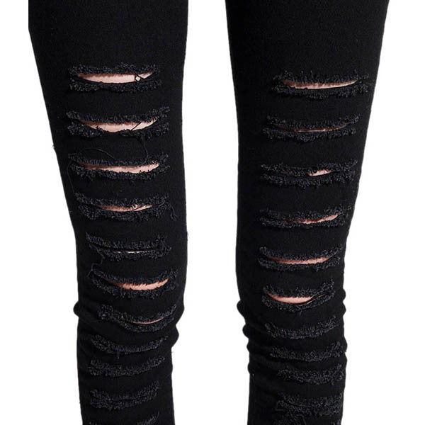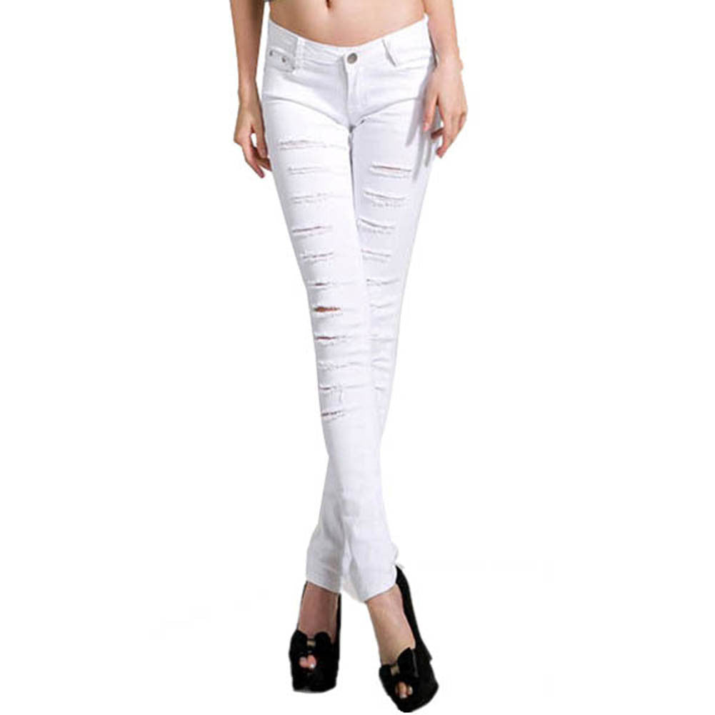 White Black Women Bandage Punk Hole Ripped Slit Skinny Jeans Pencil Pant Fashion Hot